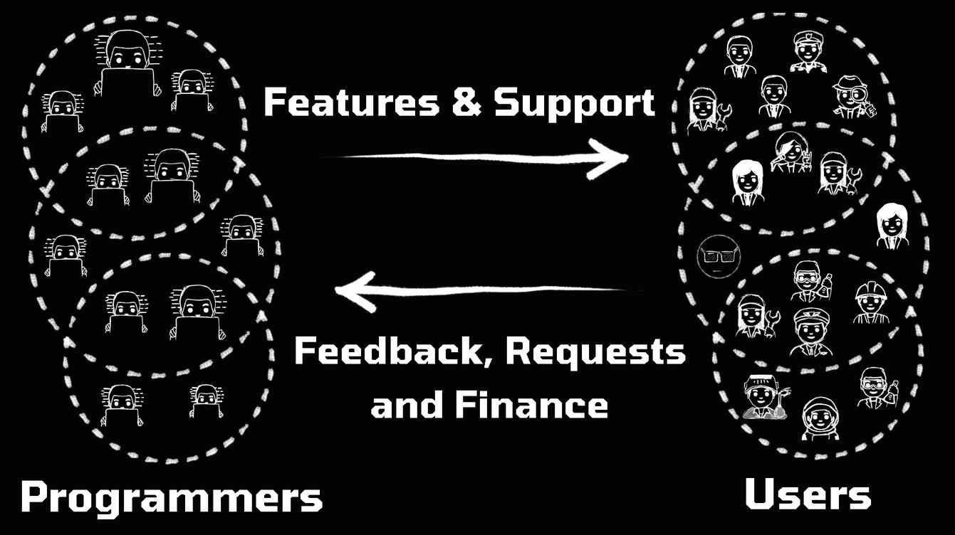 Free-tier users create the idea capital and customer service. Paying consumers and businesses foot the bills. The programmers take a cut in order to work on their own tools while building what needs to be built. It takes at least three legs to make a decent table. Those are the three legs.
